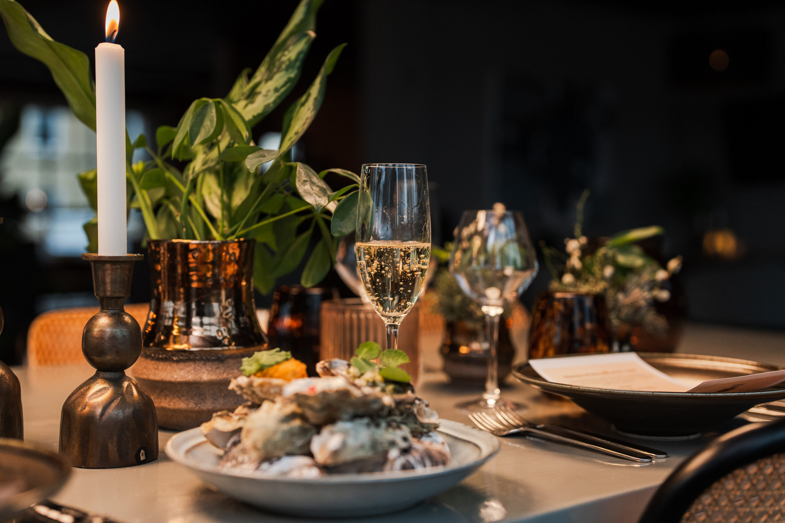 Udover maden er der altid spændende vine & cocktails på menuen, hvis du tilkøber det. Velkomstbobler hører med i prisen.